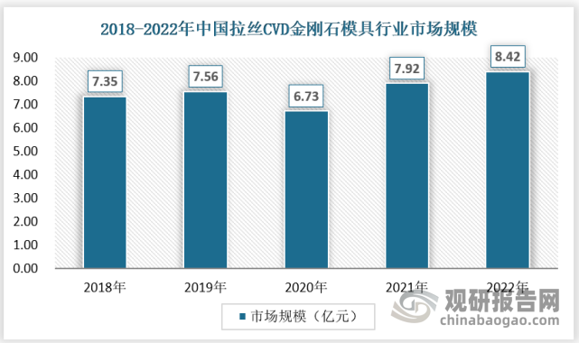 2022年CVD金刚石拉丝模具行业市场规模为8.42亿元。
